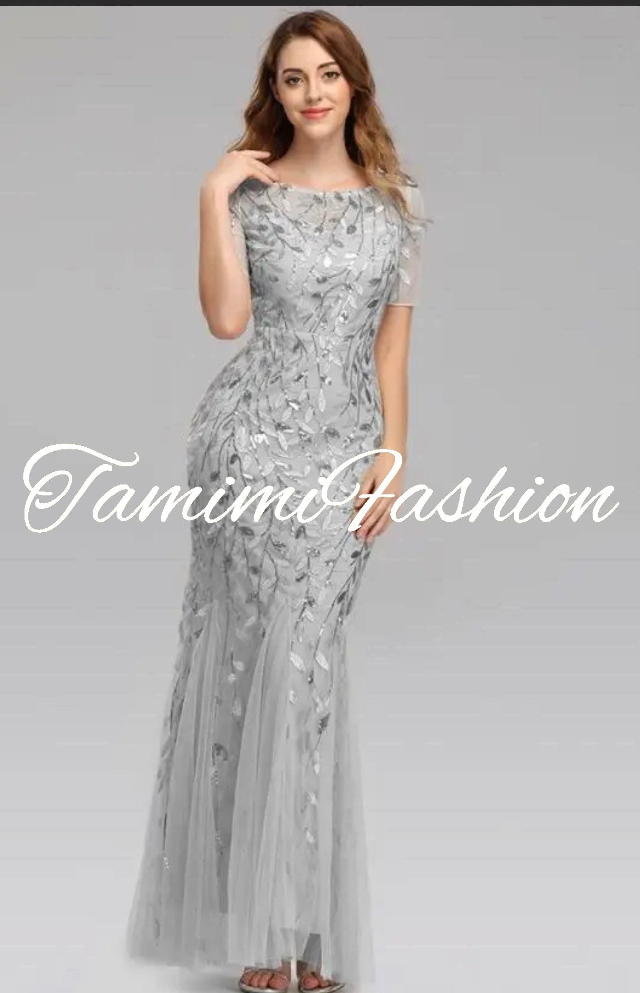 Long Dolman Sleeve Blouson Sequin Dress With Godet Skirt R M Richards